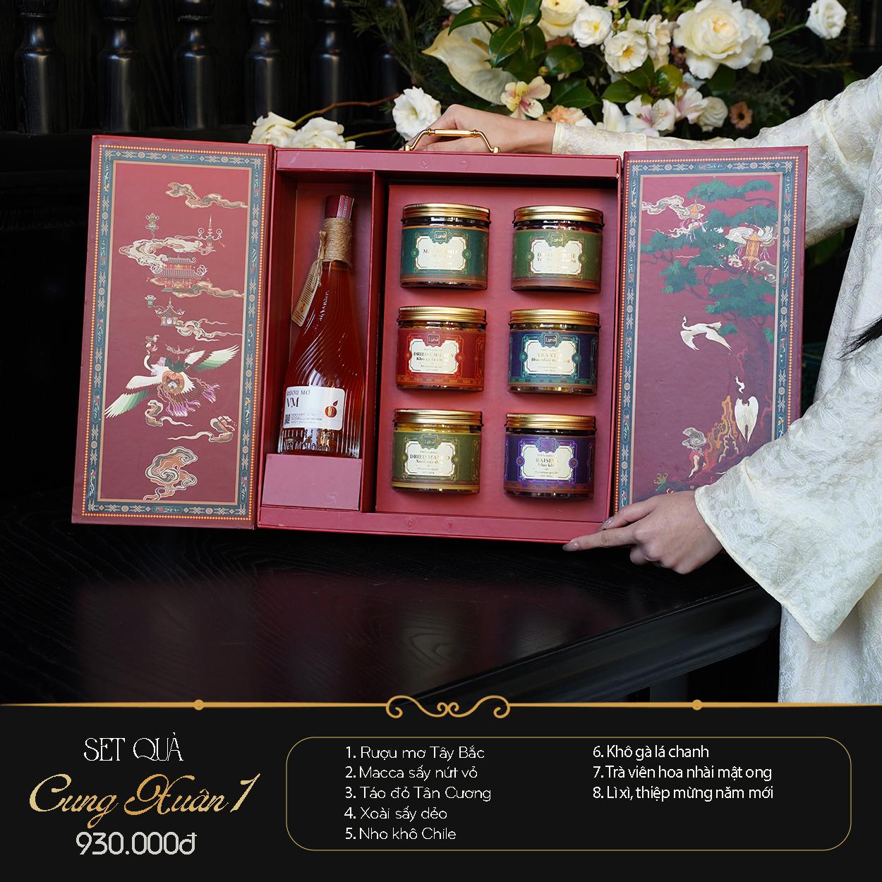 - Hộp quà kích thước 42x36x10,5cm và túi sách sang trọng