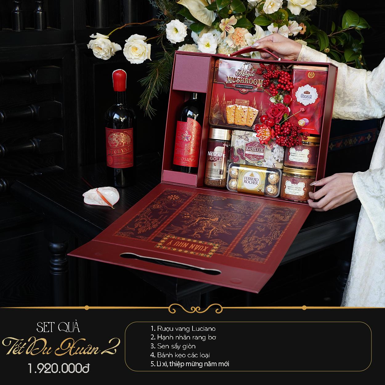 - Hộp quà kích thước 42x36x10,5cm và túi sách sang trọng